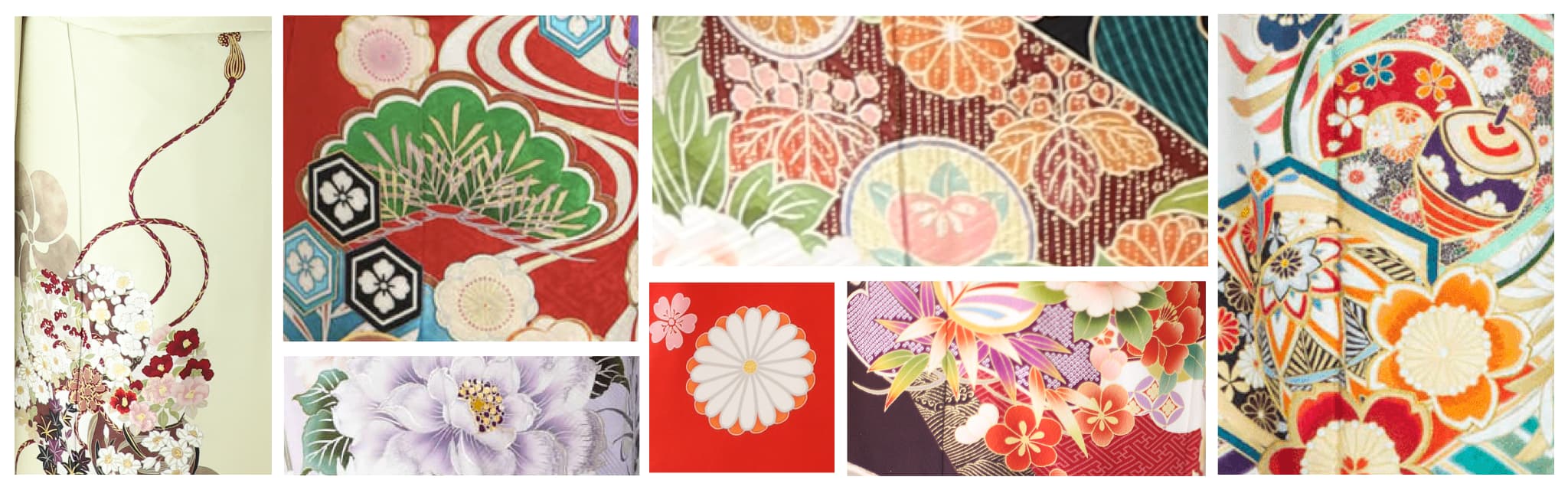 | 七宝(しっぽう) | 円形が連なる文様で、「永遠の繁栄」「平和」を象徴します。 | 繰り返し模様が全体を華やかに整え、全身写真に映えます。 |