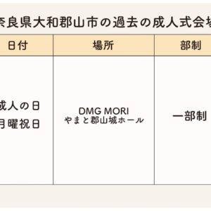 奈良県田原本町の成人式(二十歳のつどい)過去の会場・場所、日時・時間一覧