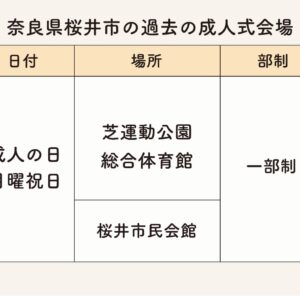 奈良県大和高田市の成人式(20歳を祝う会)過去の会場・場所、日時・時間一覧