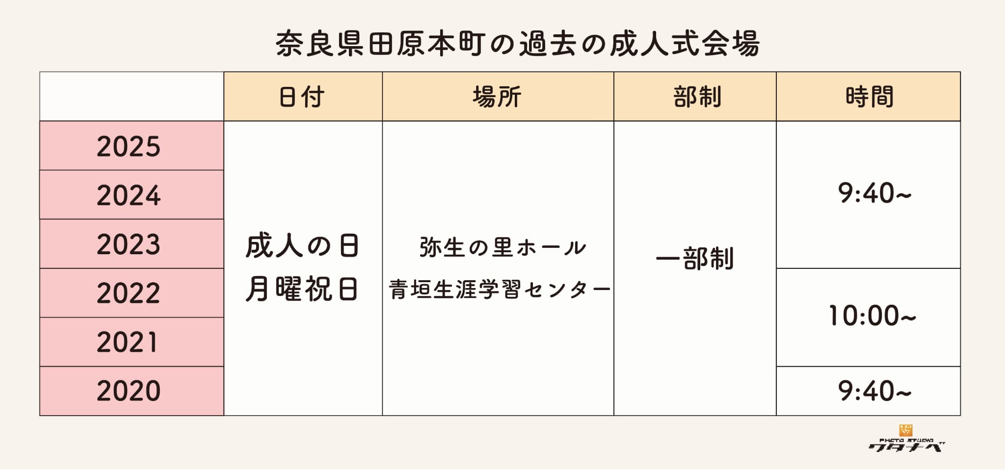 2025年(令和7年)奈良県田原本町成人式(二十歳のつどい)会場・場所、日時・時間