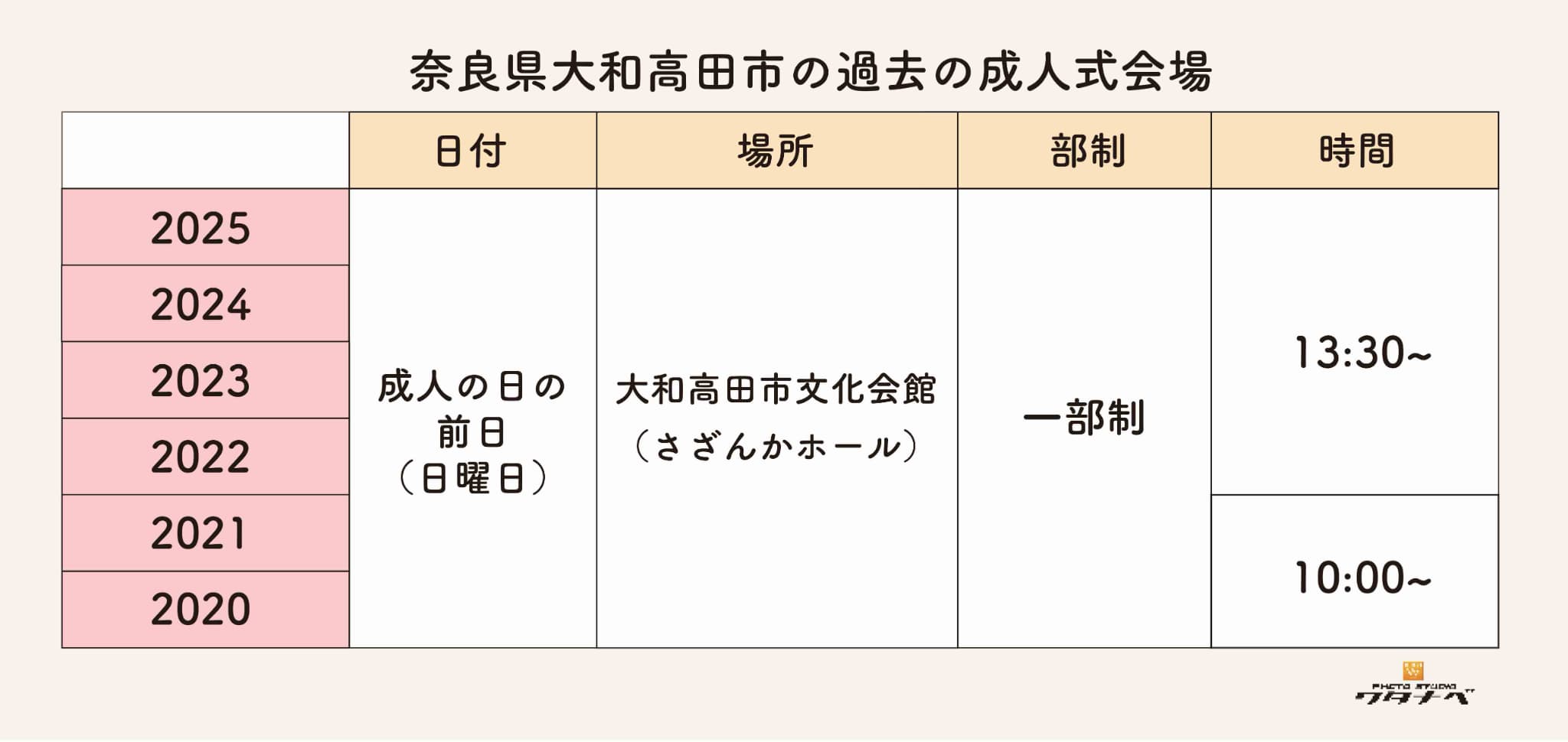 2026年(令和8年)奈良県大和高田市成人式(20歳を祝う会)概要【予定※2025/7/7時点】