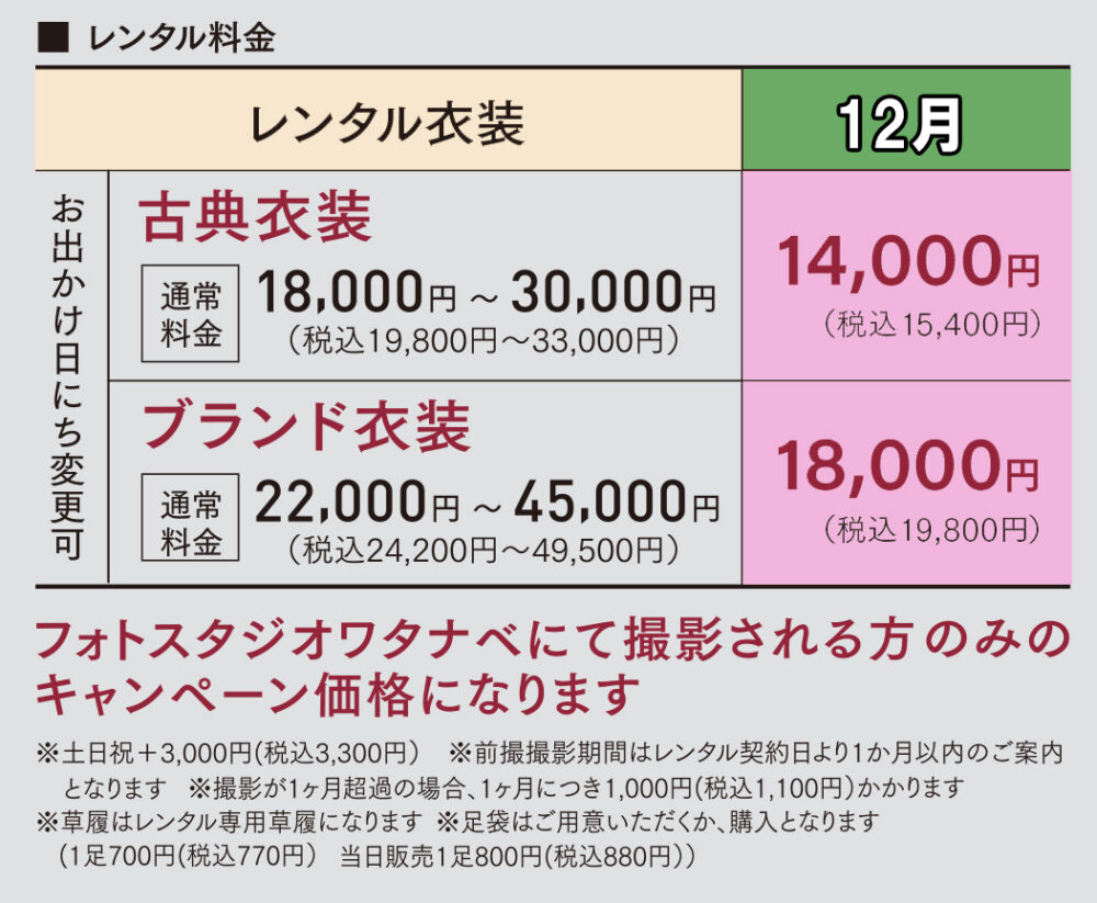 ※パパママの着付けは土日祝は別途各5,500円(税込)
