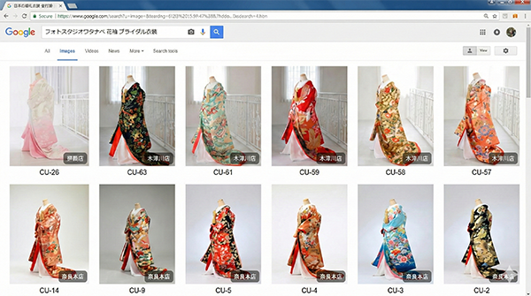 ワタナベのwebカタログでは、全店にあるドレスやタキシード・打掛等を