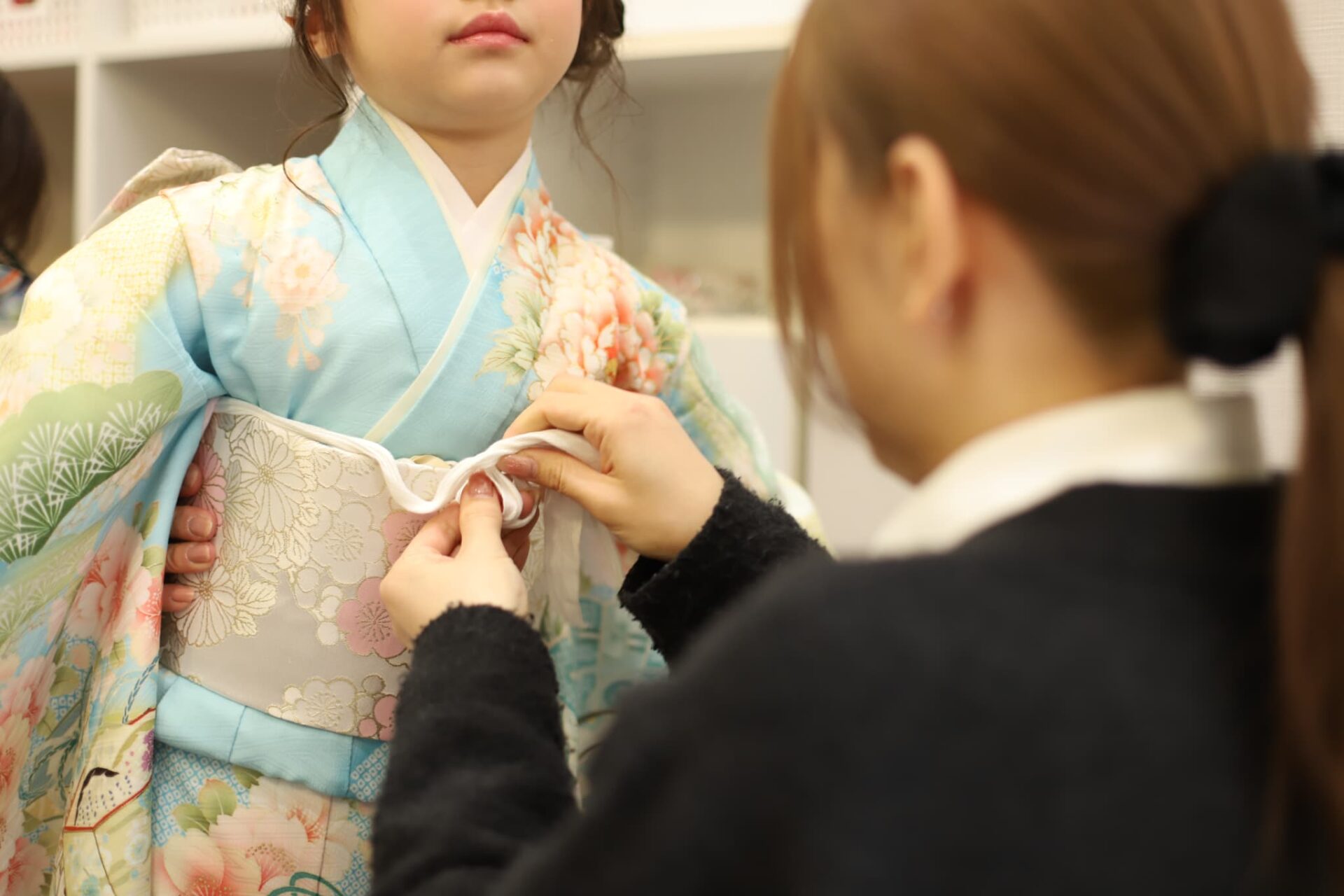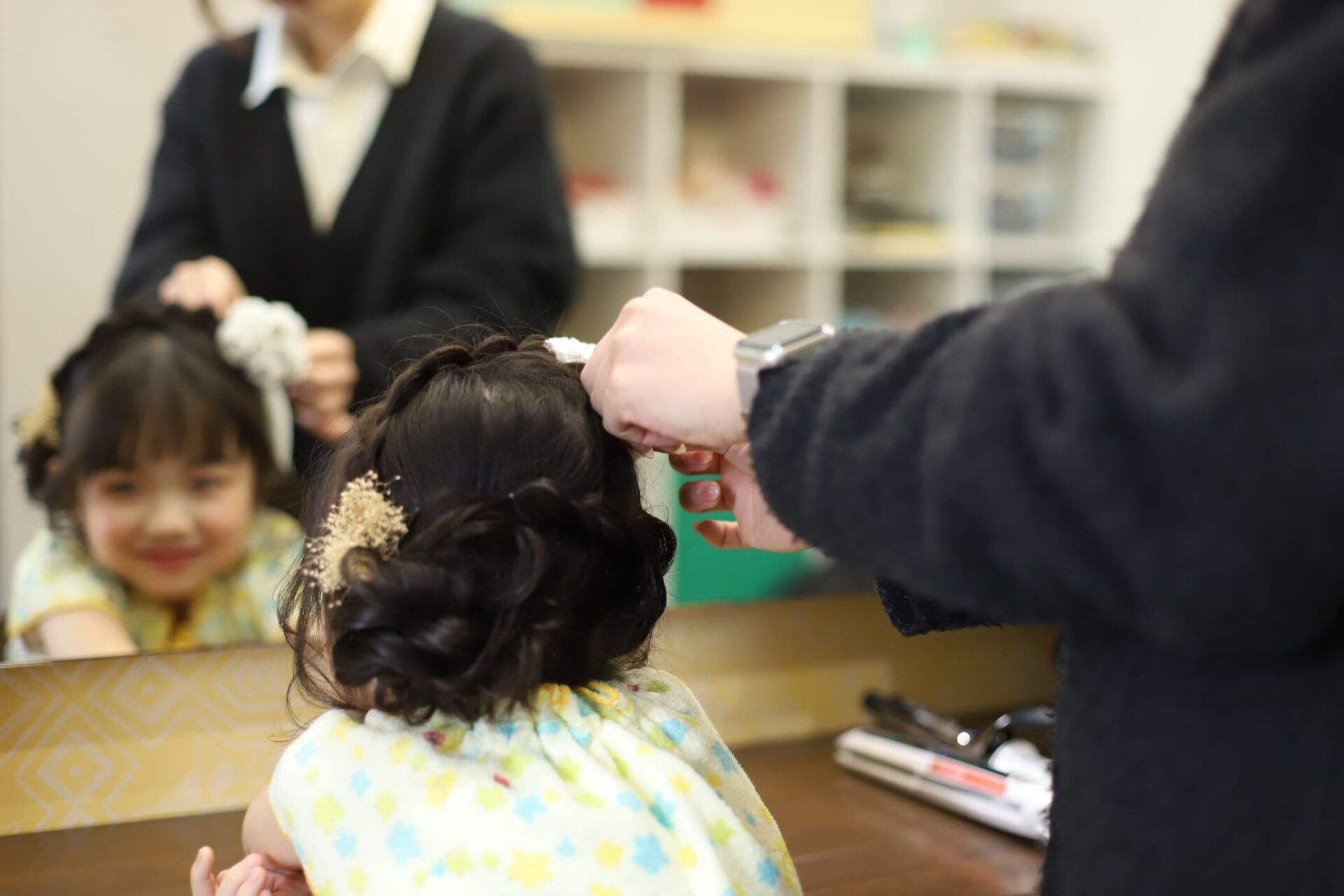 七五三レンタルプランの中に、お参り当日の着付・ヘアセット付のため、